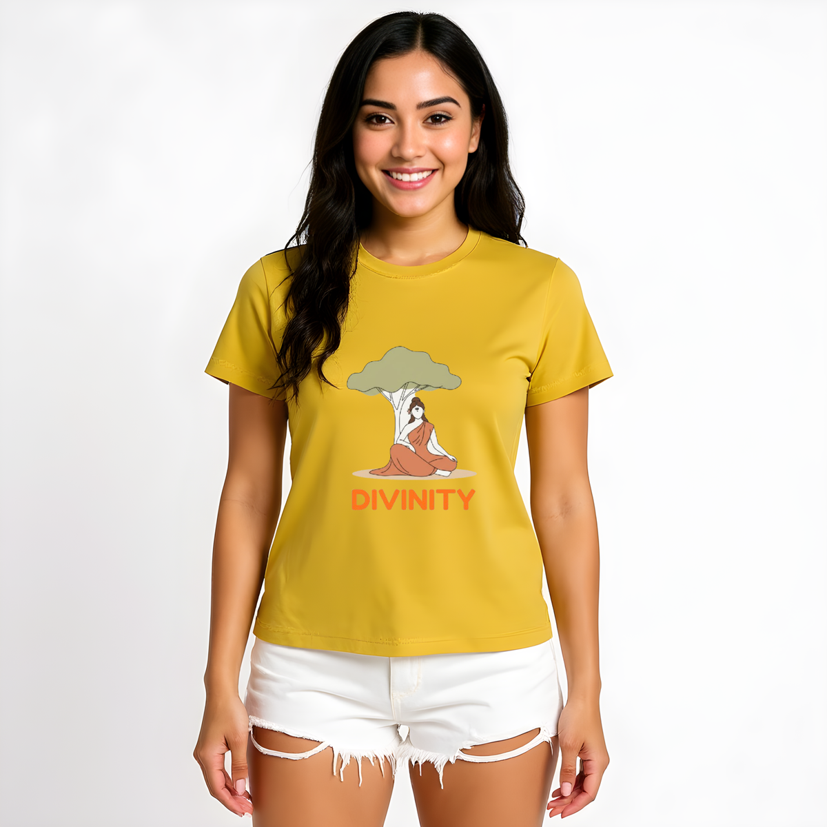 Product Description and Fit: This T-shirt features Sita Theme Design with words Divinity. It has an classic fit that is comfortable for everyday wear.